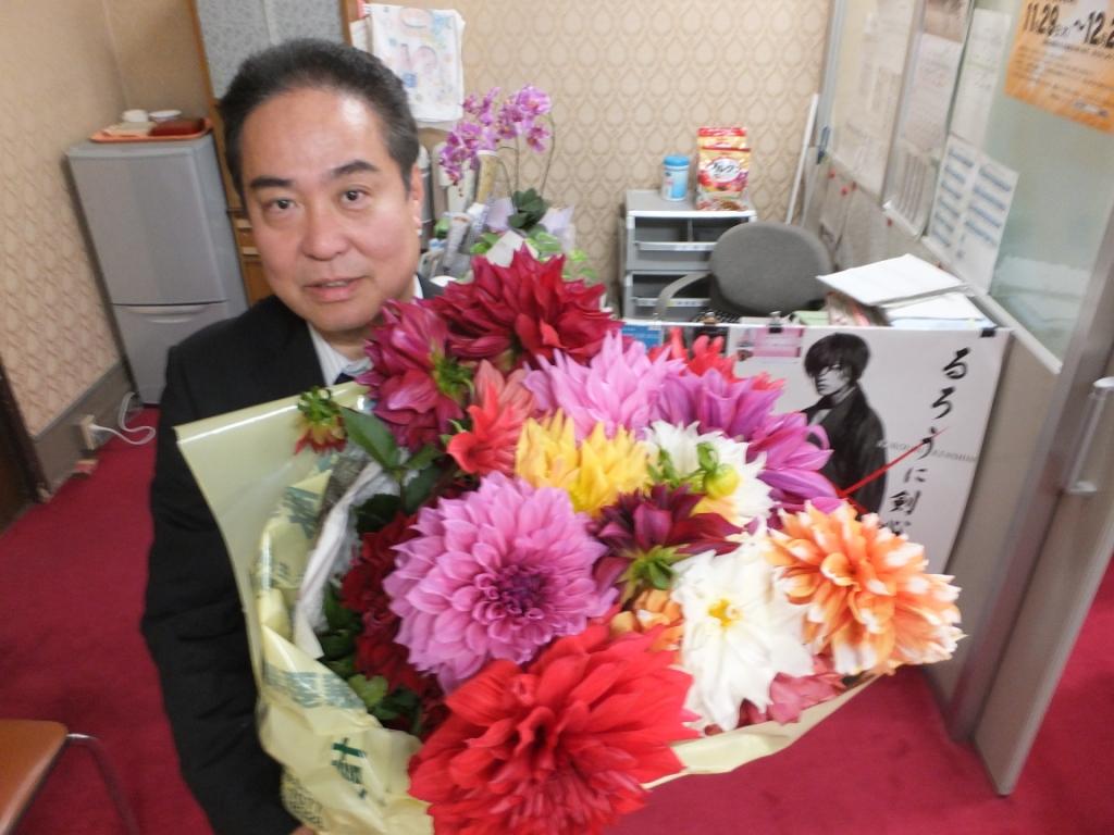 今日は井阪議員が、日野町のダリア園で栽培されたダリアを持って来られました。今が満開です。どうぞご覧下さい。