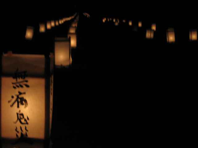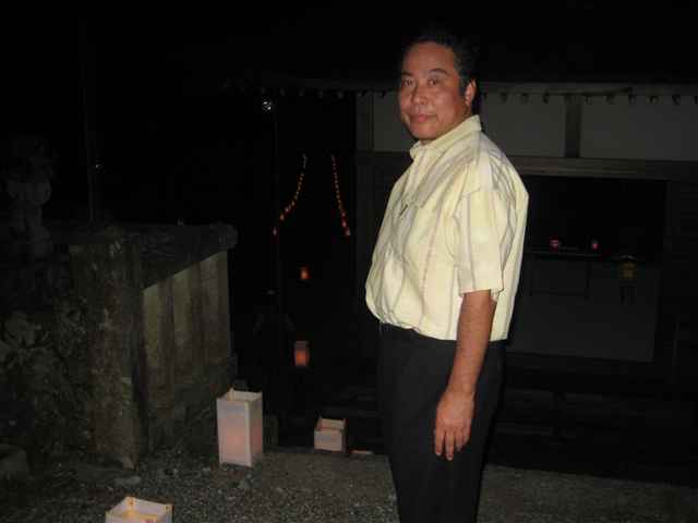 本殿のまわりや参道に、約300基の灯ろうがともされ、夜の境内は、そのとても穏やかであたたかい灯ろうのあかりに、包まれておりました。
