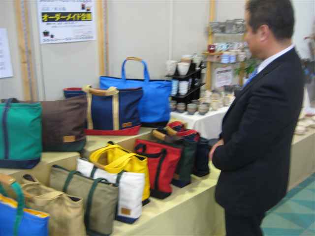 先日の新聞に、高島市新旭町の高島地域地場産業振興センターで、オリジナルかばんを注文できる仕組みを今月から始めた、との記事が載ってあり、10月12日地場産センターに見に行ってきました。
