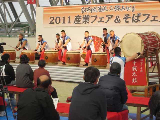 力強い太鼓の響きでのオープニングで始まり、ステージでは恒例のそば早食い、またそば打ち体験なども行なわれておりました。